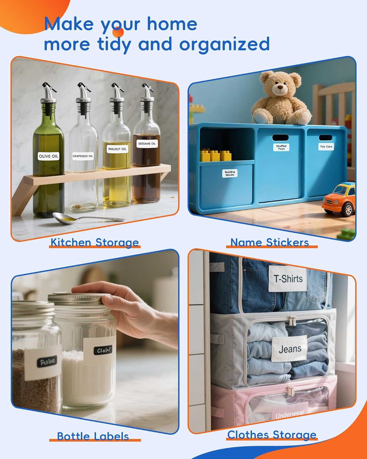 - Ideal for Homes & Office: InkWon label maker machine with tape perfect for organizing home items, office files, or classroom supplies—all with one compact device. Boost efficiency and aesthetics for a more streamlined life and workspace.(Note:This device only supports black printing. For colored labels, colored patterned label tapes must be used for printing.)