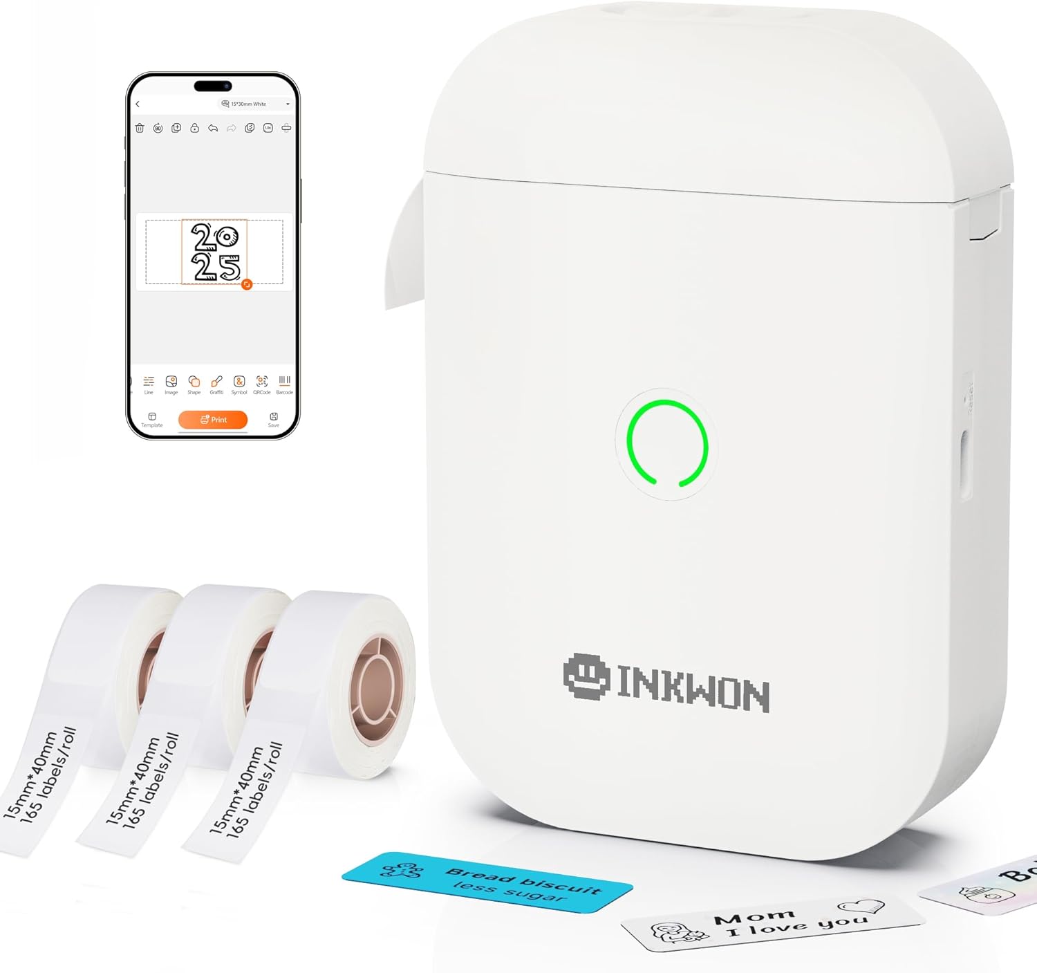 - Multi-Functional Idea Hub: A bluetooth label printer with a built-in app offering tons of creative templates: home & life, inspiration, holidays, beauty, work & study, and more. Customize freely in DIY mode: mix text, stickers, QR/barcodes, borders, and more. Bring your ideas to life with personalized labels