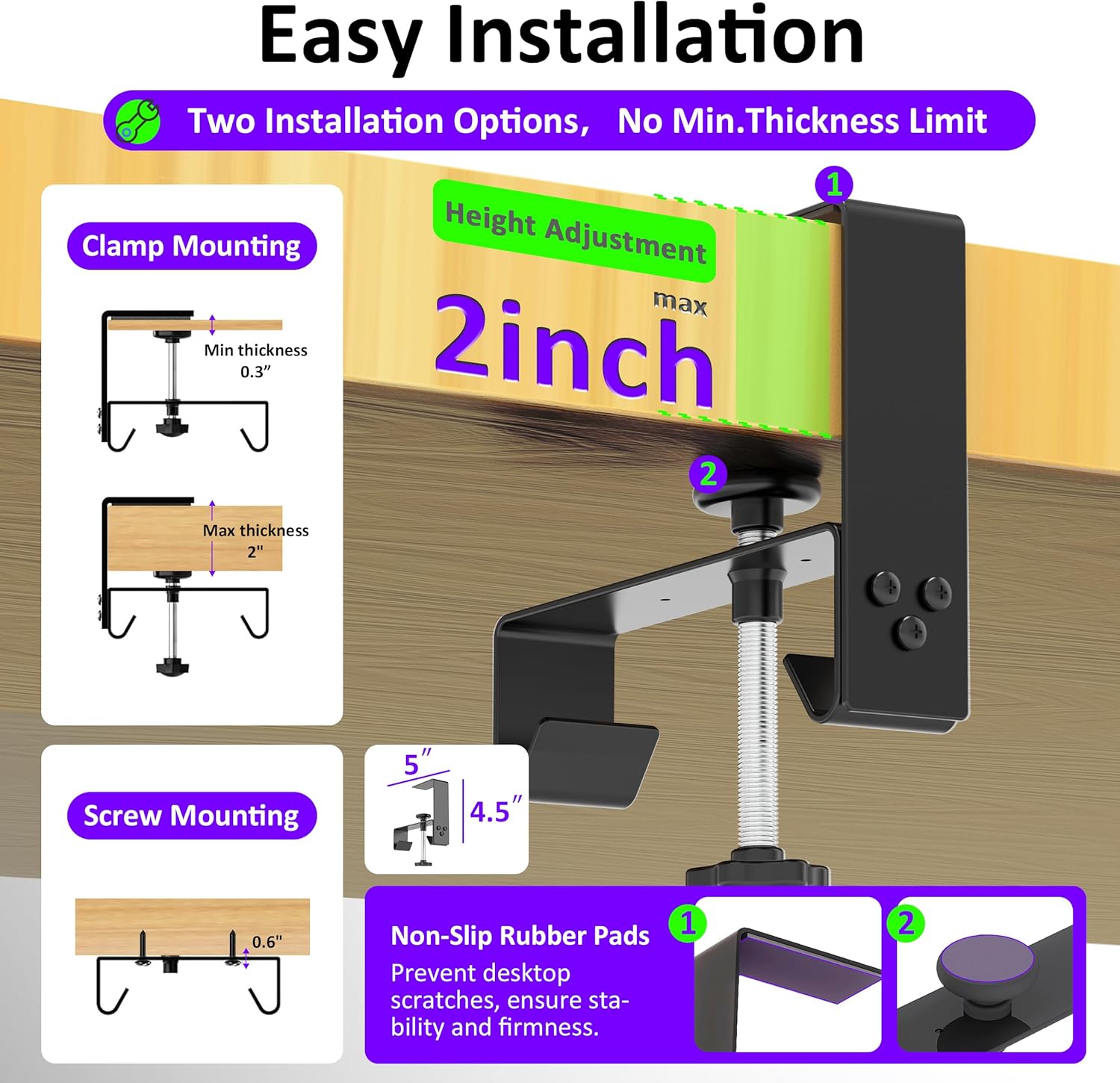 - 【Easy Installation】: Our under-desk cable tray features two installation methods, with optional clip-on or screw-mounted brackets. The process is effortless and convenient, requiring no drilling. Simply clamp or tighten easily to quickly complete the installation of the computer cable organizer.