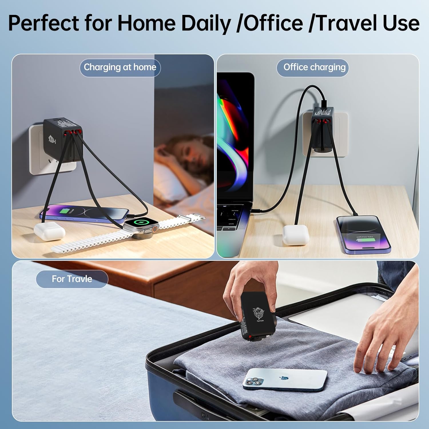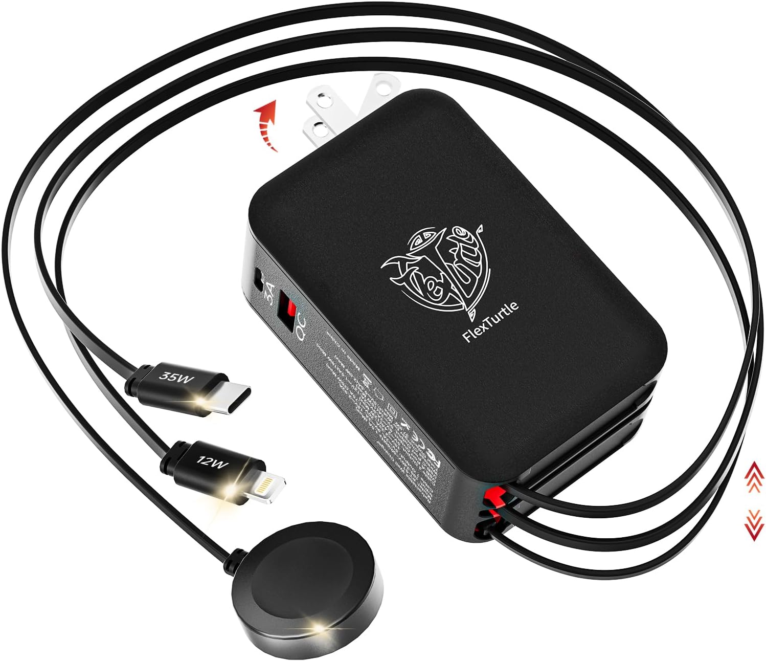 - 【Space-Saving Retractable Design 】-The FlexTurtle retractable phone charger wall plug features three 3.2ft retractable cables (USB-C, Lightning, and Apple Watch), eliminating clutter. Perfect as a phone charging station for desks, nightstands, or as travel accessories for women and men