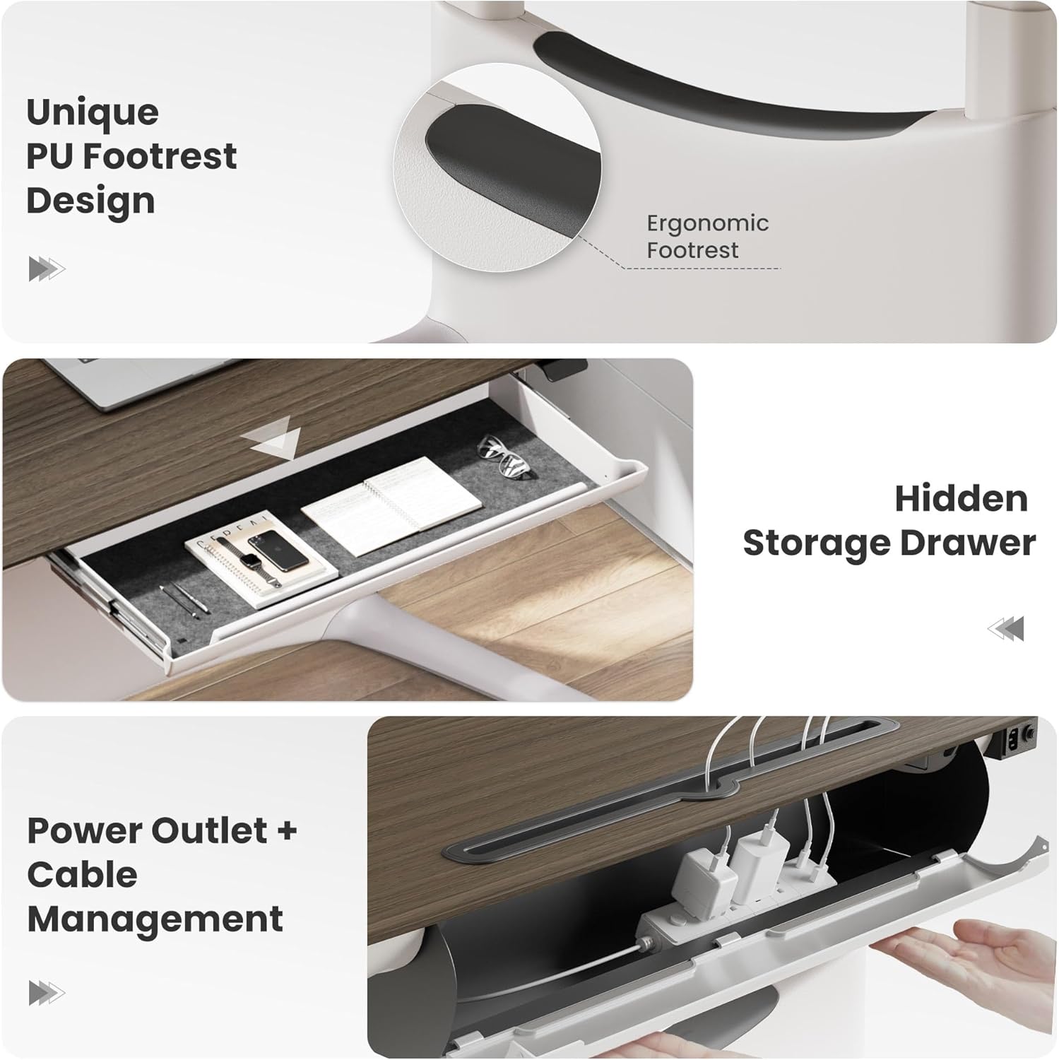 - 【Ergonomic Footrest for Flexible Posture】Whether sitting, standing, lounging, or cross-legged, the built-in footrest supports your legs in any position. Reduce pressure, enhance comfort, and boost productivity.