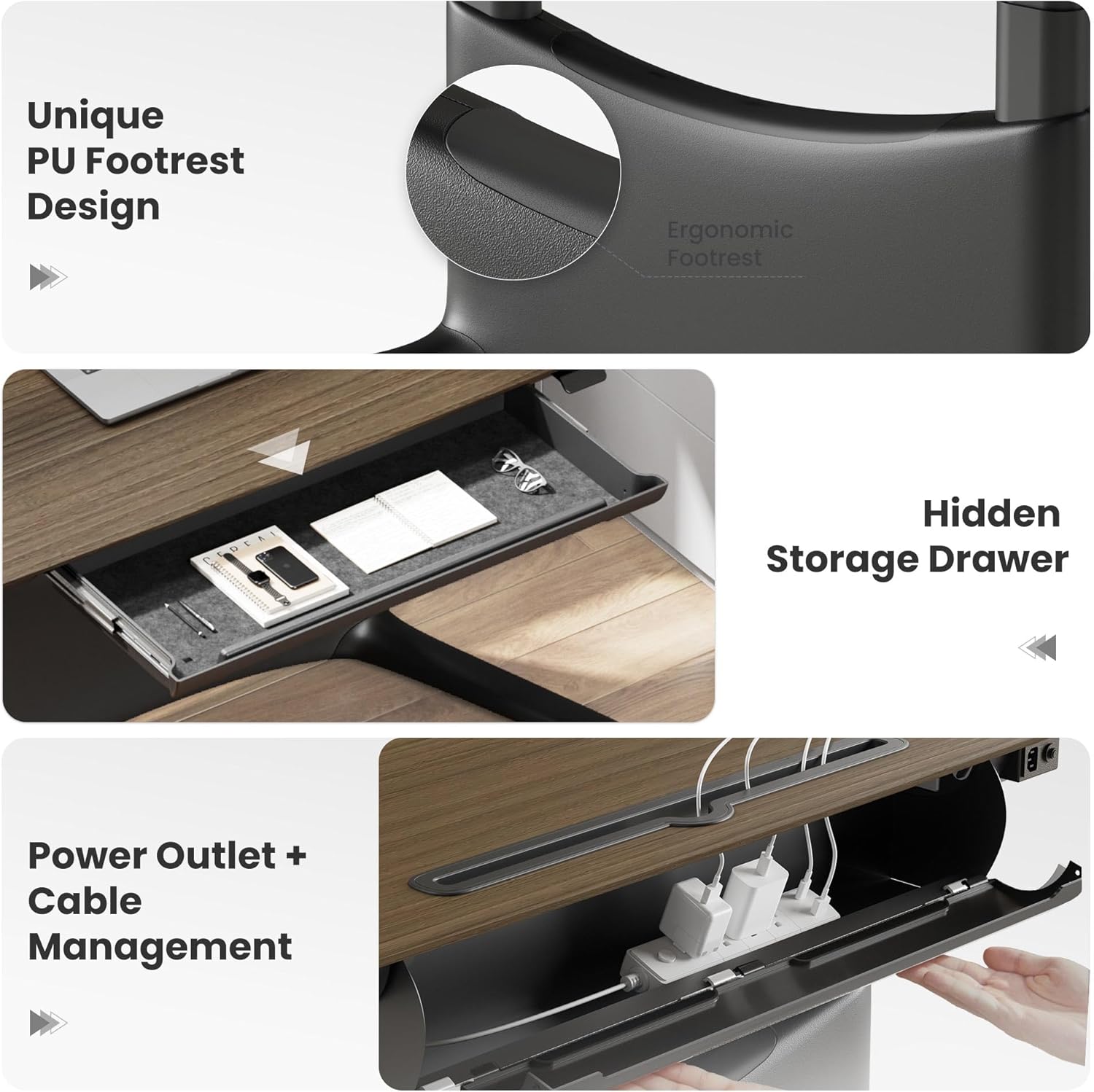 - 【Ergonomic Footrest for Flexible Posture】Whether sitting, standing, lounging, or cross-legged, the built-in footrest supports your legs in any position. Reduce pressure, enhance comfort, and boost productivity.