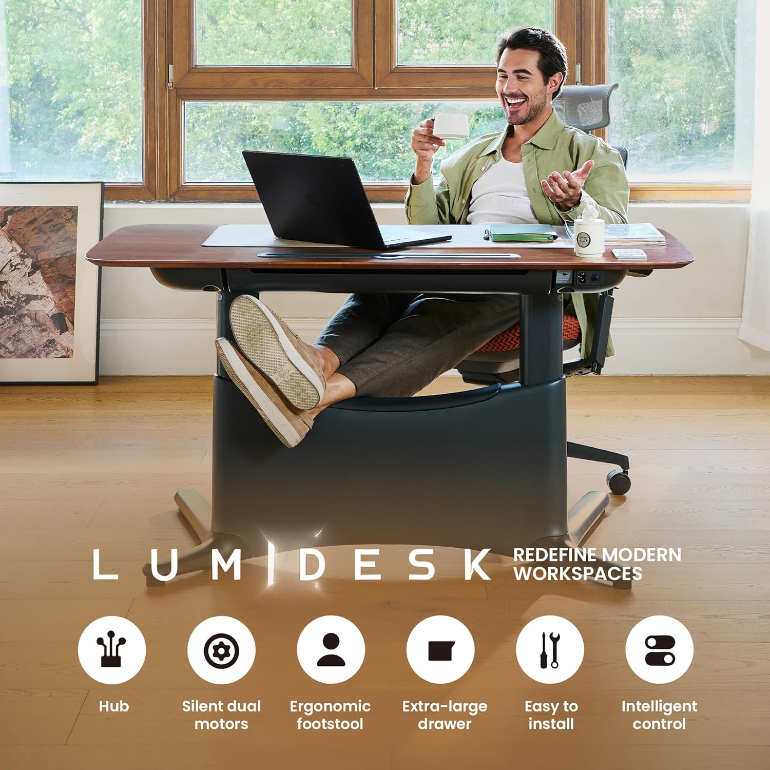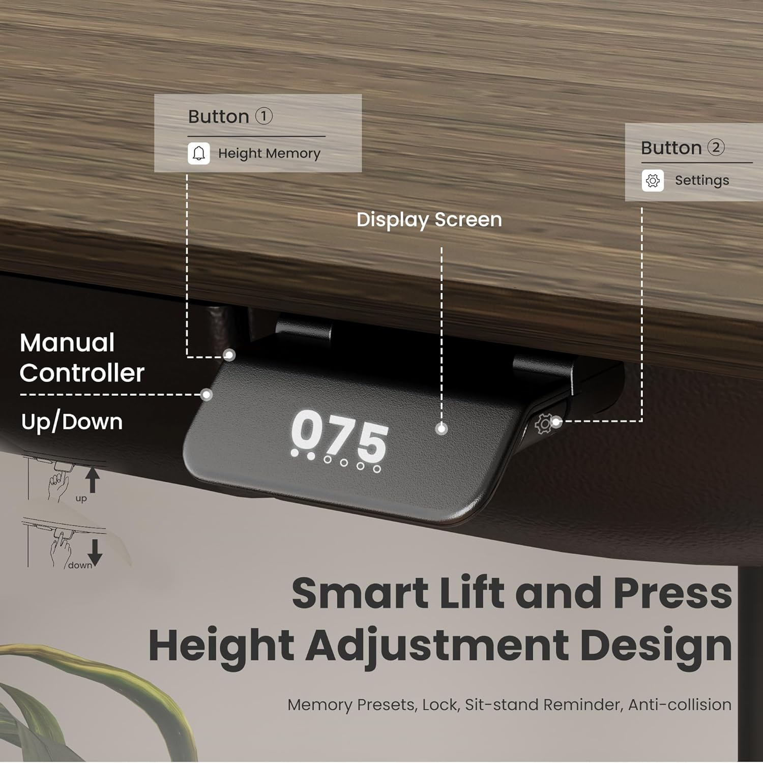 - 【Premium Whole-Piece Desktop & Sturdy Frame】Crafted with FSC-certified MFC and natural veneer, the one-piece desktop offers a seamless, elegant surface with stunning natural wood grain. Paired with a carbon steel frame weighing 122 lbs, it delivers rock-solid stability and long-lasting durability. Suitable for any use scenario—this adjustable desk can be used as an office desk, studio desk, study desk, gaming desk, computer desk and more!
