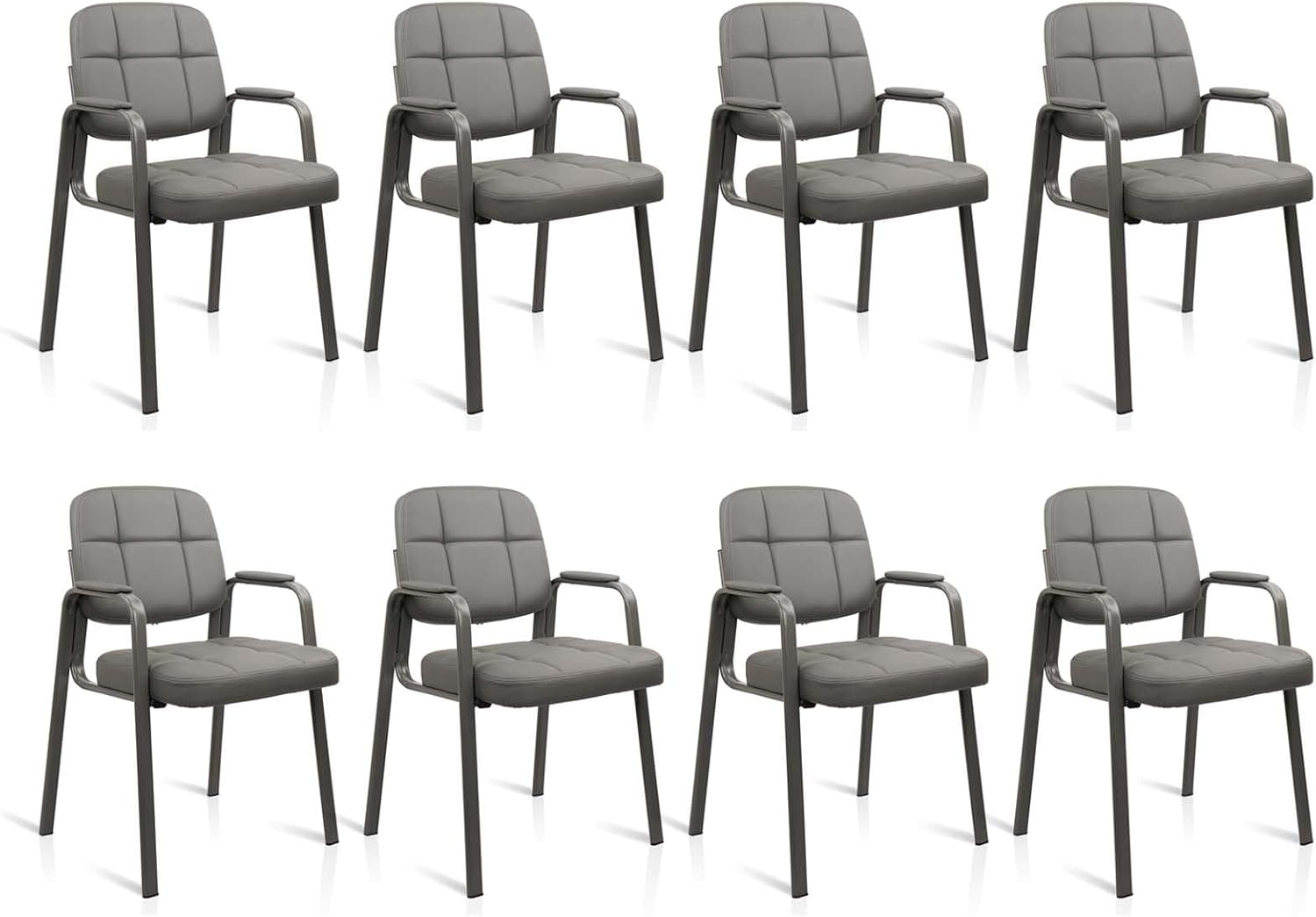 CLATINA Waiting Room Guest Chair with Bonded Leather Padded Arm Rest for Office Reception and Conference Desk(Grey 8 Pack)