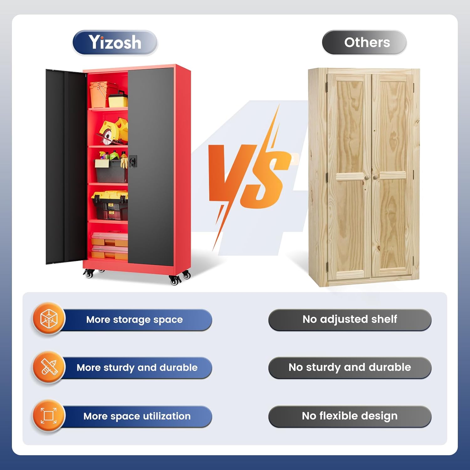 - 『Detachable & Lockable 360° Swivel Casters』:Yizosh Metal storage cabinet with wheels is easy to move around.It has a strong and durable metal frame with excellent load-bearing capacity, allowing you to store enough items.
