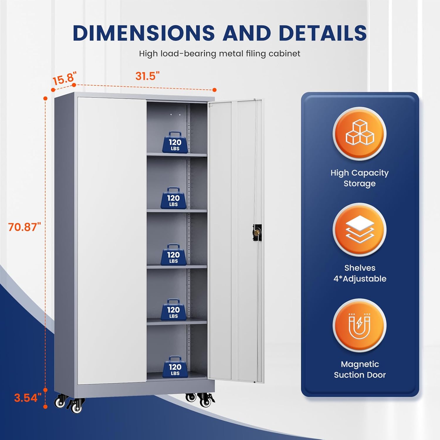 - 『Large Space』:In addition to being a great choice for storing a large number of items, this tall steel cabinet has an interior design that adds extra space to any room and opens the door to your home, ideal for protecting your products from Light exposure, temperature, dirt and dust.