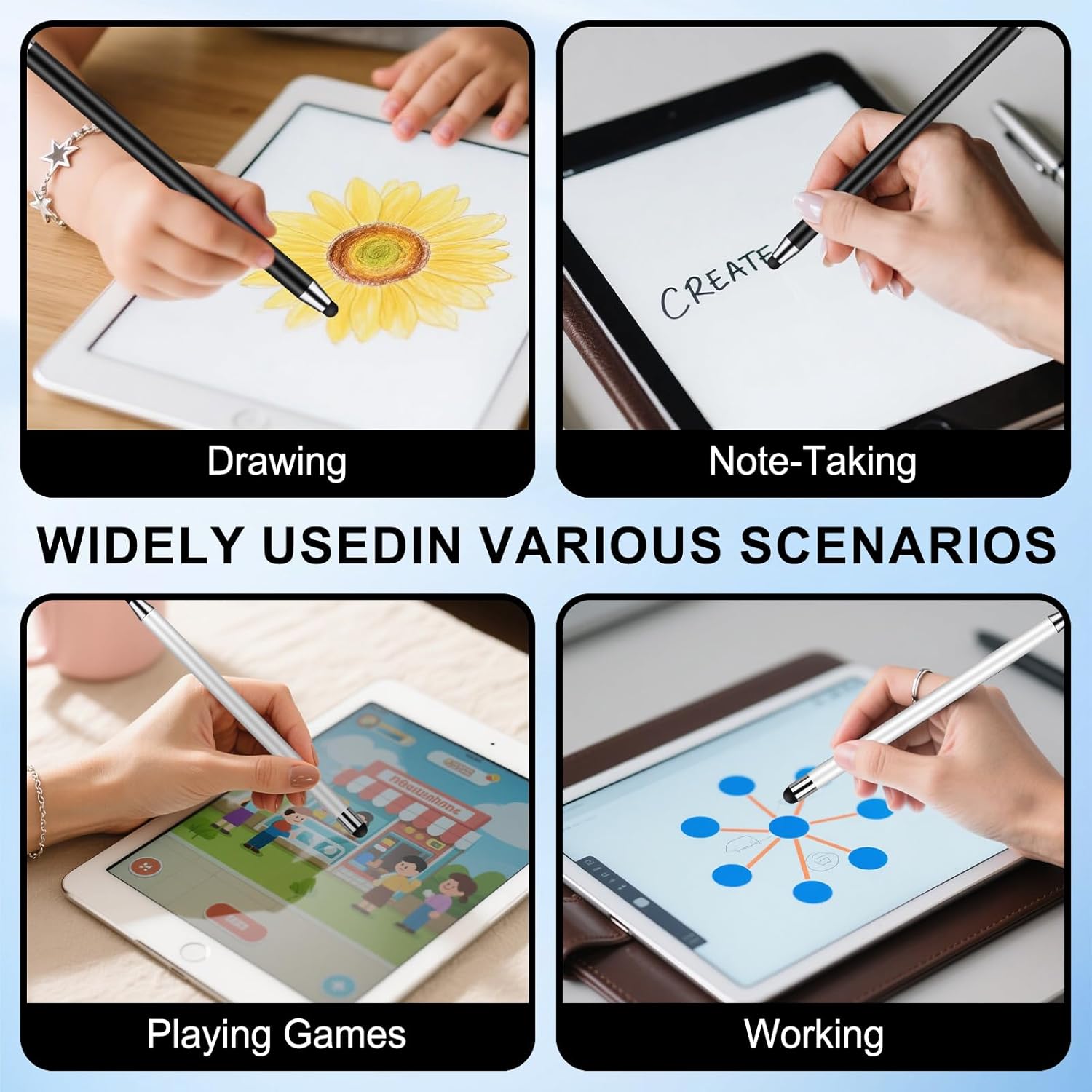 - 【Enhanced Precision with Dual Rubber Tips - Smooth, Comfortable, and Stylish】Experience unparalleled accuracy with our dual-tip stylus, featuring two premium silicone rubber tips (7mm/5mm) designed for smooth, responsive performance across tasks like browsing, writing, drawing, and gaming.