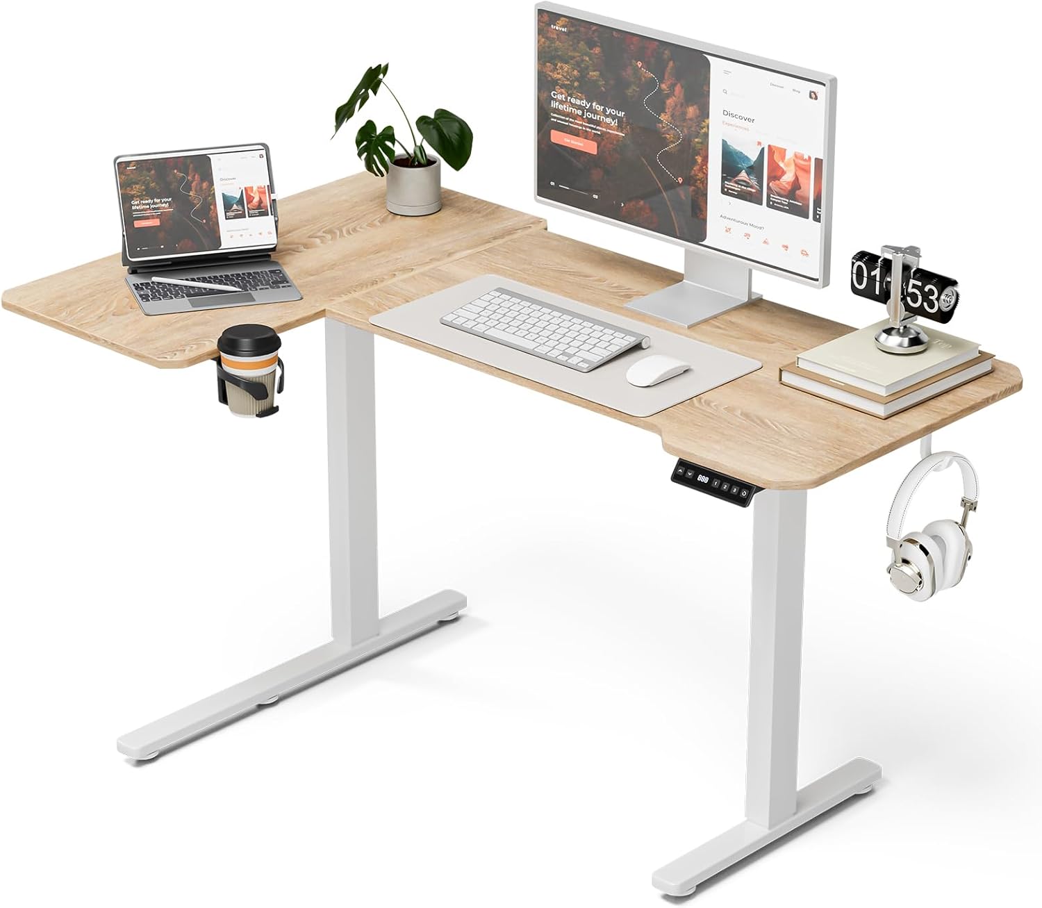 - 【Reversible L-Shaped Corner Design】Our sit stand desk offer reversiable 51" x 31" adjustable desktop that can be used both left-handed and right-handed and eassly support more than 2 monitors for daily use