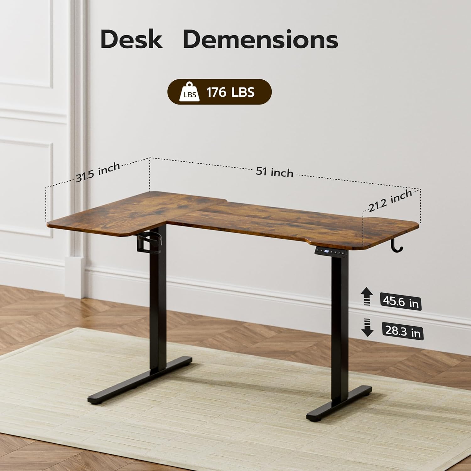 - 【Reversible L-Shaped Corner Design】Our sit stand desk offer reversiable 51" x 31" adjustable desktop that can be used both left-handed and right-handed and eassly support more than 2 monitors for daily use