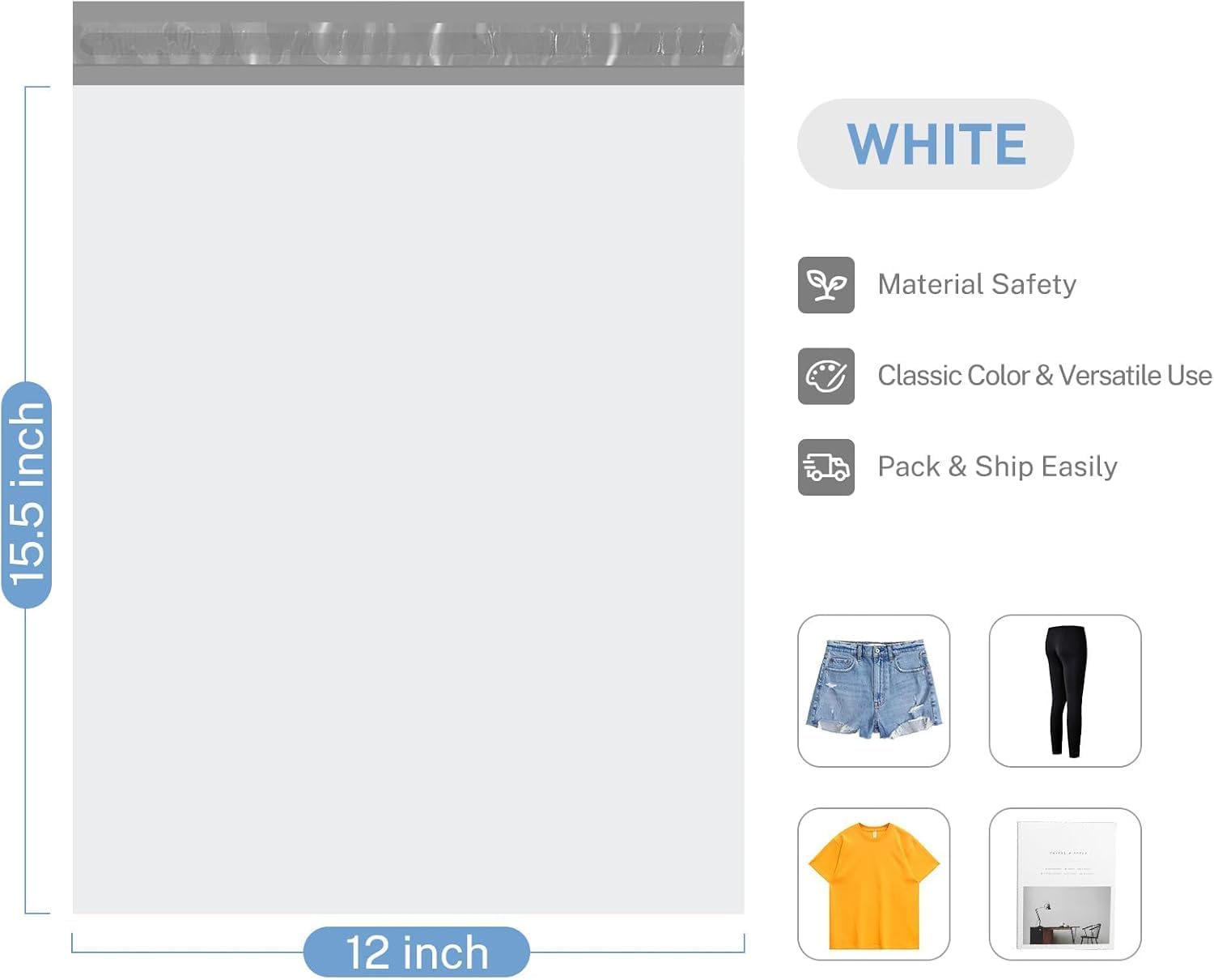- White 12x15.5 Poly Mailers - Our premium poly mailers are a trusted and reliable shipping solution for your business needs. Each envelope measures 12" x 15.5" and is designed to provide superior protection for your products during transit. And the price of 2000pack mailers are more affordable