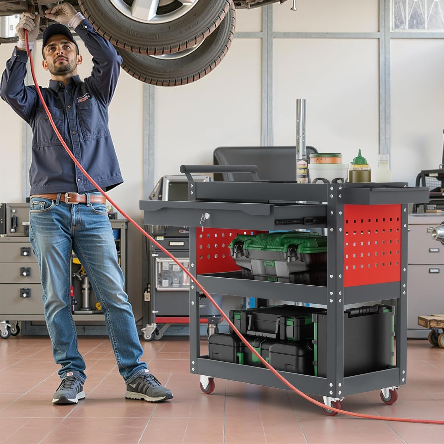 - [3-Tier Storage + Free Organizer Box] Features spacious 3-tier storage (330 lbs capacity) plus a free compartmentalized organizer for screws and small parts-perfect for professional repairs or warehouse use.