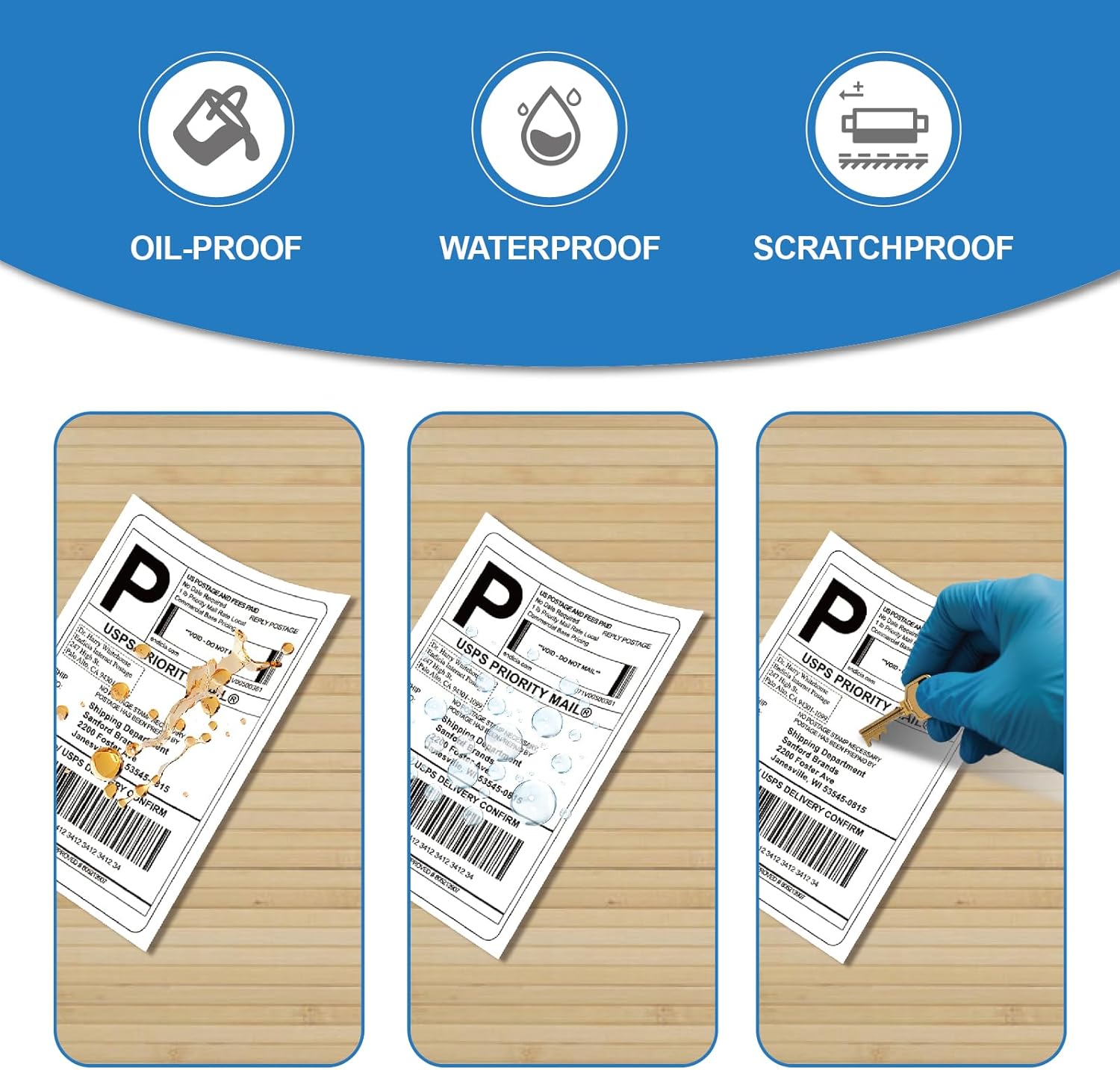- 🛡️Water-resistant coating protects 4x6 labels from rain/humidity. Scratch-proof surface ensures address/barcode legibility even after rough handling.