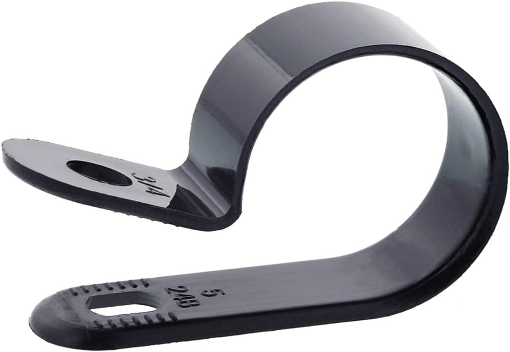 Secure 3/4 Inch Standard R Type UV Black Nylon Screw Mount Cable Clamp for Wire Management - 100 Pack