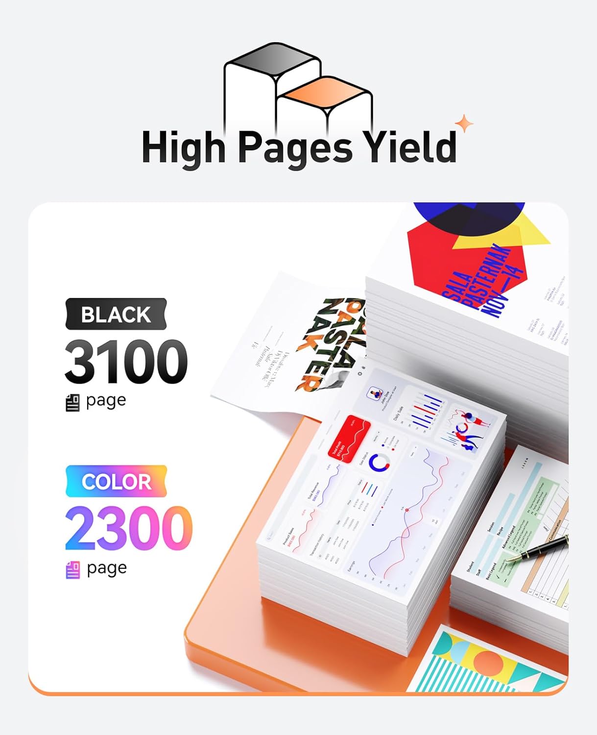 - Yield & Version: 3,100 pages for Black and 2,300 pages Color toner cartridge (A4, 5% Coverage), High Yield Version 054H toner cartridges.