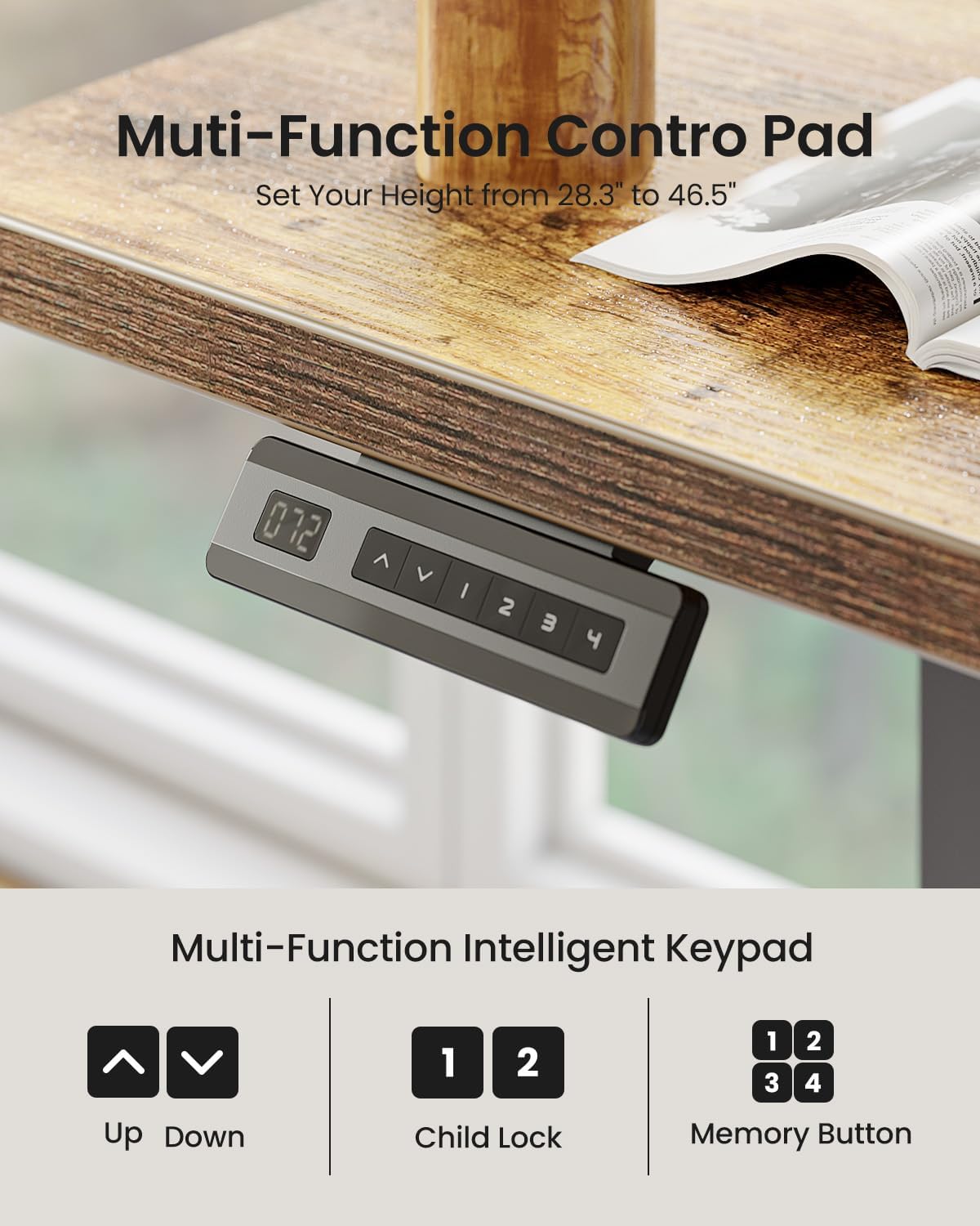 - 【Stable & Quiet Lift System】The lift system with sturdy steel. Contained an industrial-grade steel frame that able to support up to 176 lbs. Maximum lifting speed: 20mm/s, no-load noise≤55db.