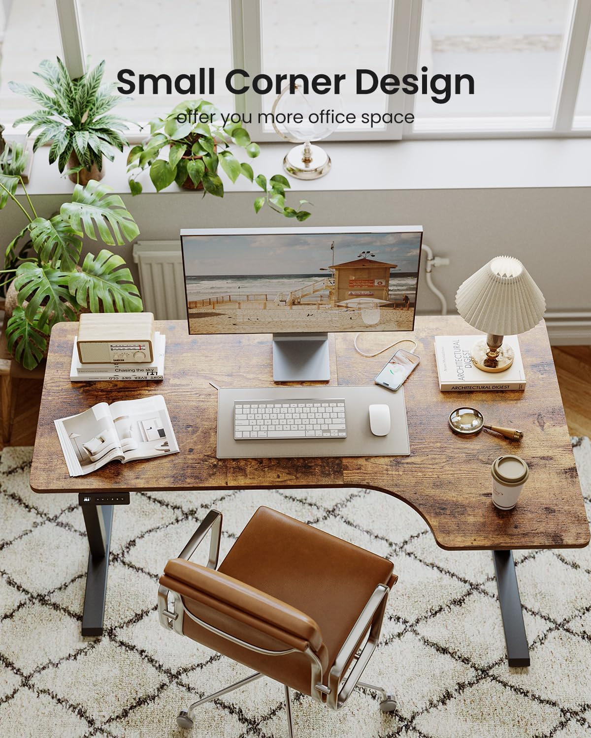 - 【55 inch Ample Workspace】This large corner table offers a 55 inch workstation, the right workspace for documents + the center zone for electronics. Two sections operate independently — your laptop, handwritten notes, and tools spread out without crowding.