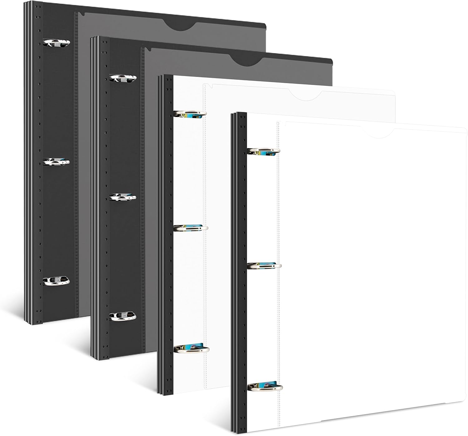 INFUN 1 Inch Telescoping 3 Ring Binder Black+White - 4 PCS, Flexible Binders with Customizable Front Cover and Clear Catalog Pocket,1 inch Binders 3 Ring, 225 Sheet Capacity