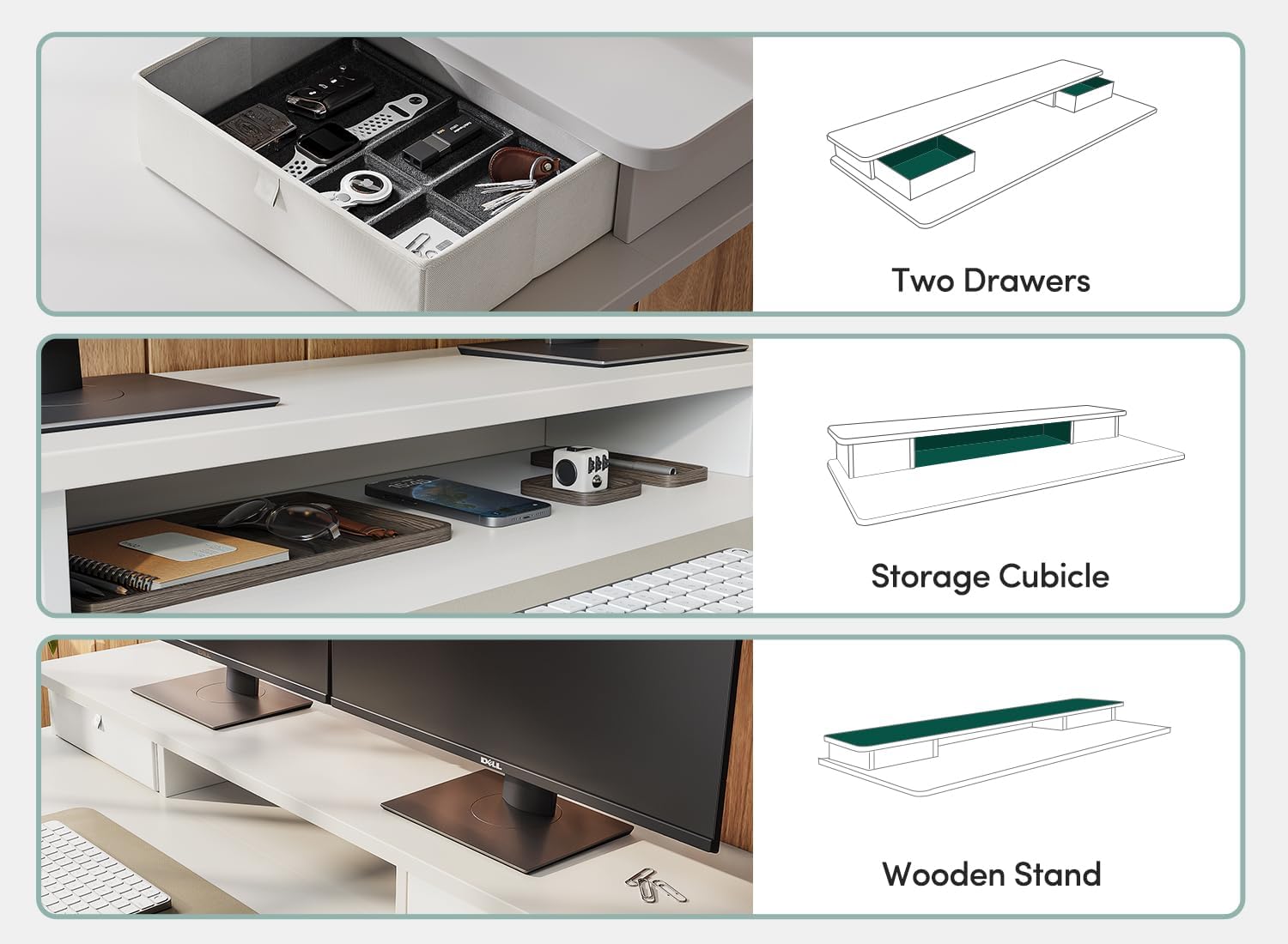 FEZIBO 63 x 28 Inch Deeper Height Adjustable Electric Standing Desk with Double Drawers, Sit Stand Up, Home Office Computer Desk with 4 Height-Adjustable Feets & 2 Hooks, White Frame/White Top