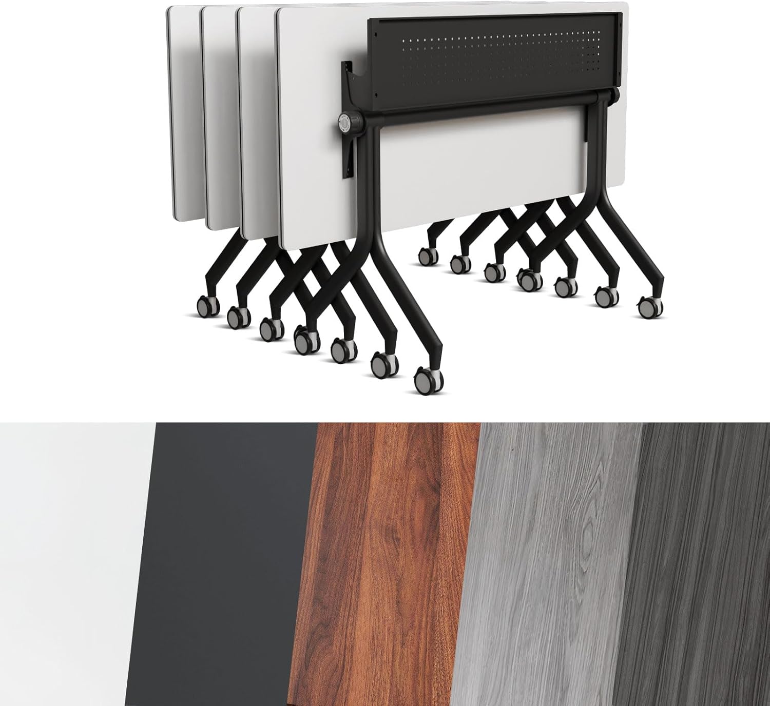 Conference Room Table, Folding Conference Tables,Thicken Grey Tabletop,Flip Top Wooden Seminar Meeting Room Table for Conference Room Offices (4, Black Drawer, 47.2“)