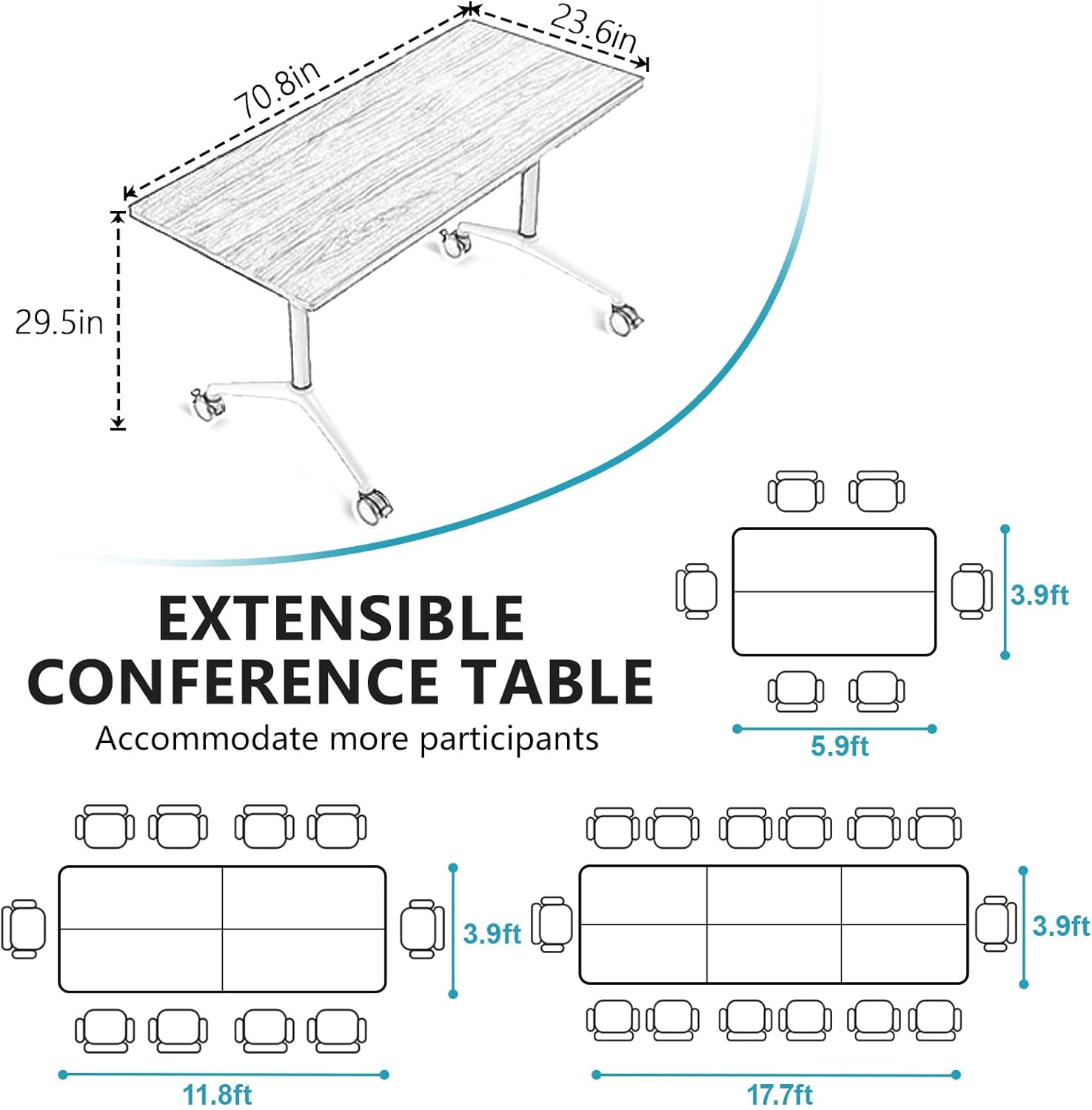 - Multiple sizes: Our conference table has 4 desktop sizes to choose from. The large desktop space can easily accommodate your office supplies. When you need to organize a larger meeting, you can splice these tables together