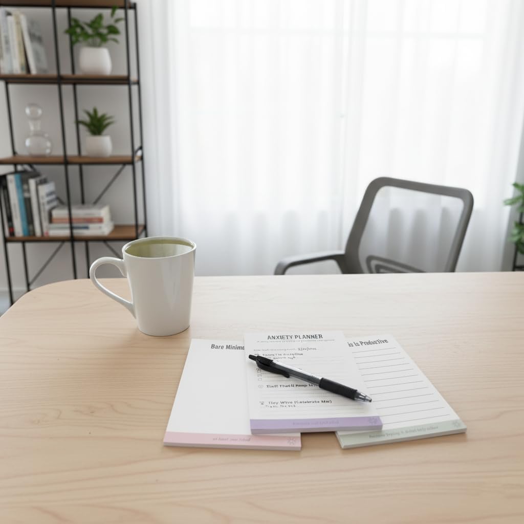 - Bare Minimum Tracker – When getting out of bed is the win. Minimalist pad with “At least you tried” reminder—ideal for burnout days.
