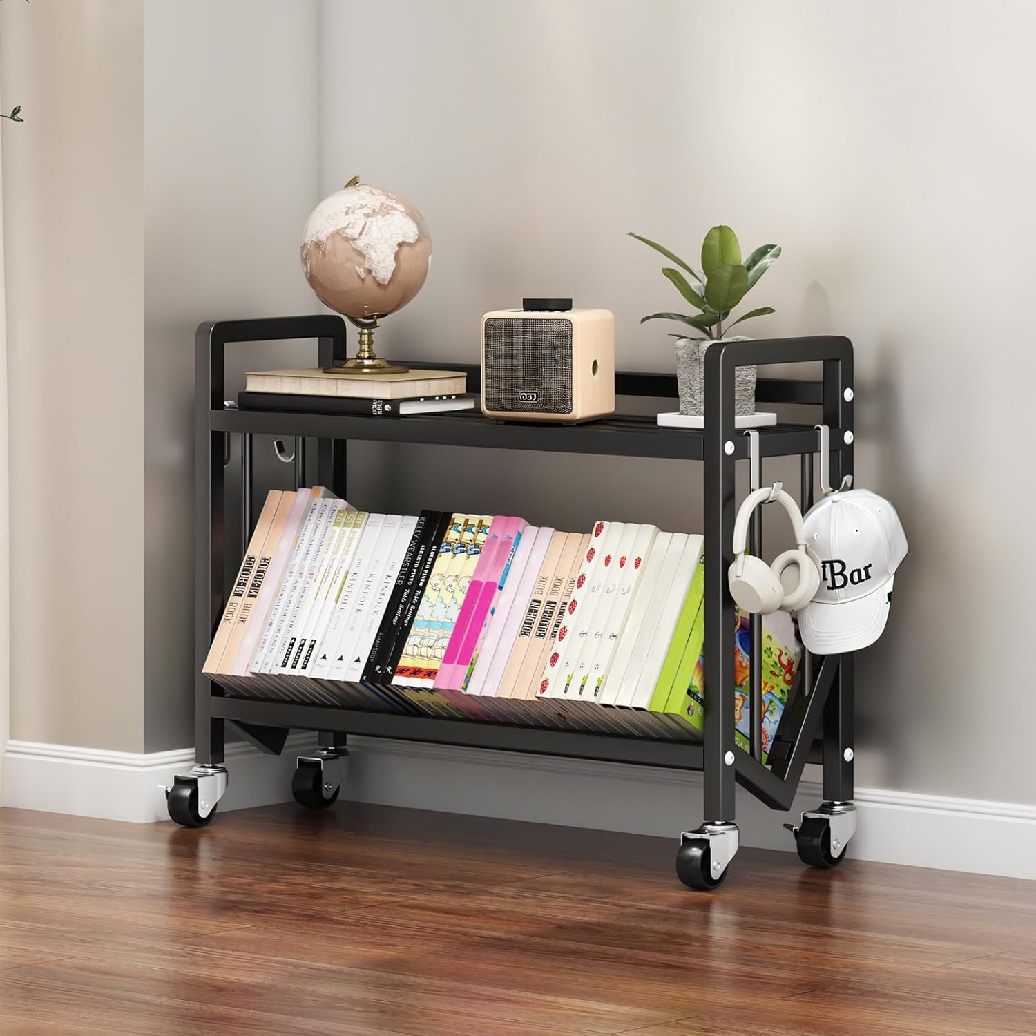 - 4. Versatile Uses: Home: Can be used as a bookshelf, nightstand, sofa corner table, or entryway shoe rack. Office/Commercial: Suitable for offices, convenience stores, and coffee shops for storing magazines, documents, and more. Educational Institutions: For storing books or transporting materials in classrooms, dormitories, and libraries.