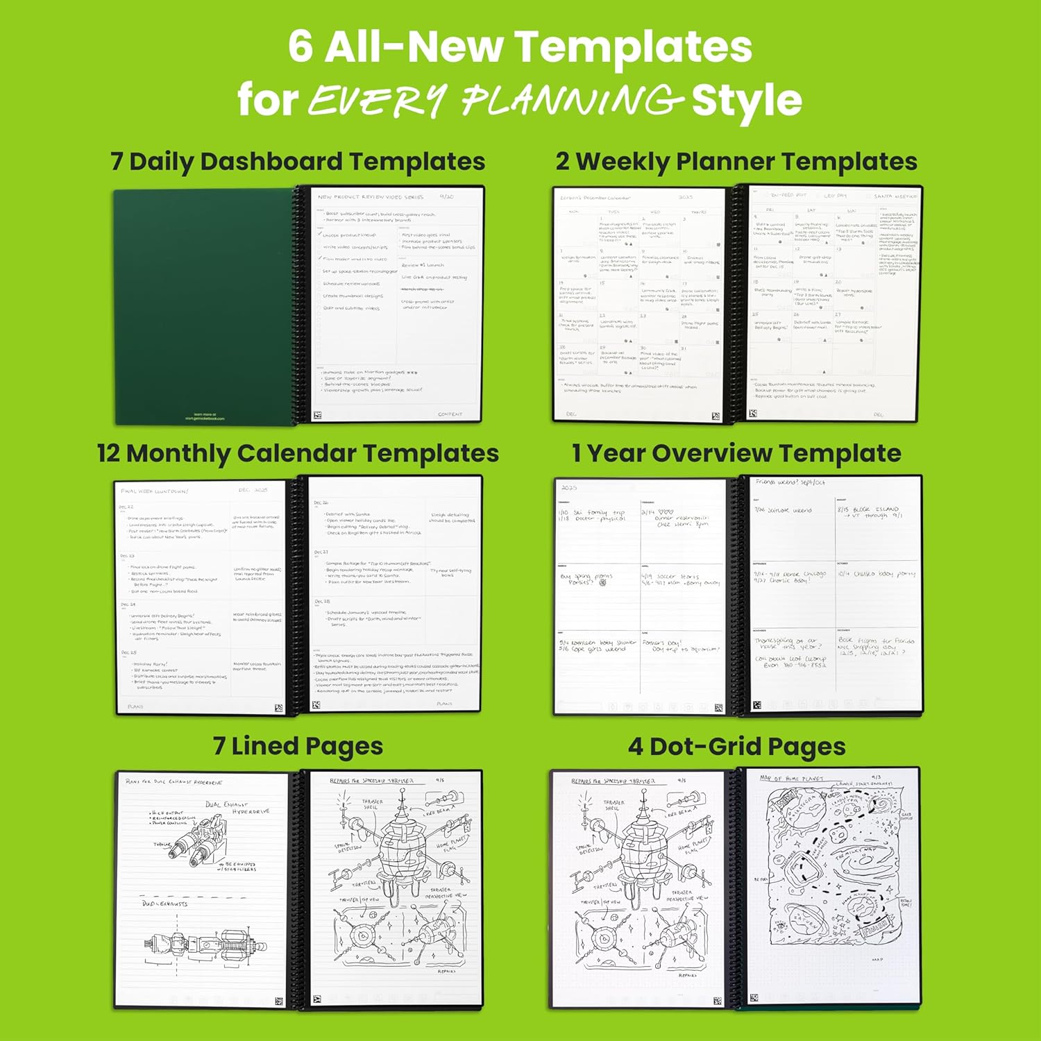 - Plan, Digitize, Erase, Reuse: Track to-dos & manage schedules with the included Pilot Frixion Pen, digitize effortlessly using the Rocketbook app, store in your preferred cloud destination. When done, simply wipe the pages clean with a towel & water.