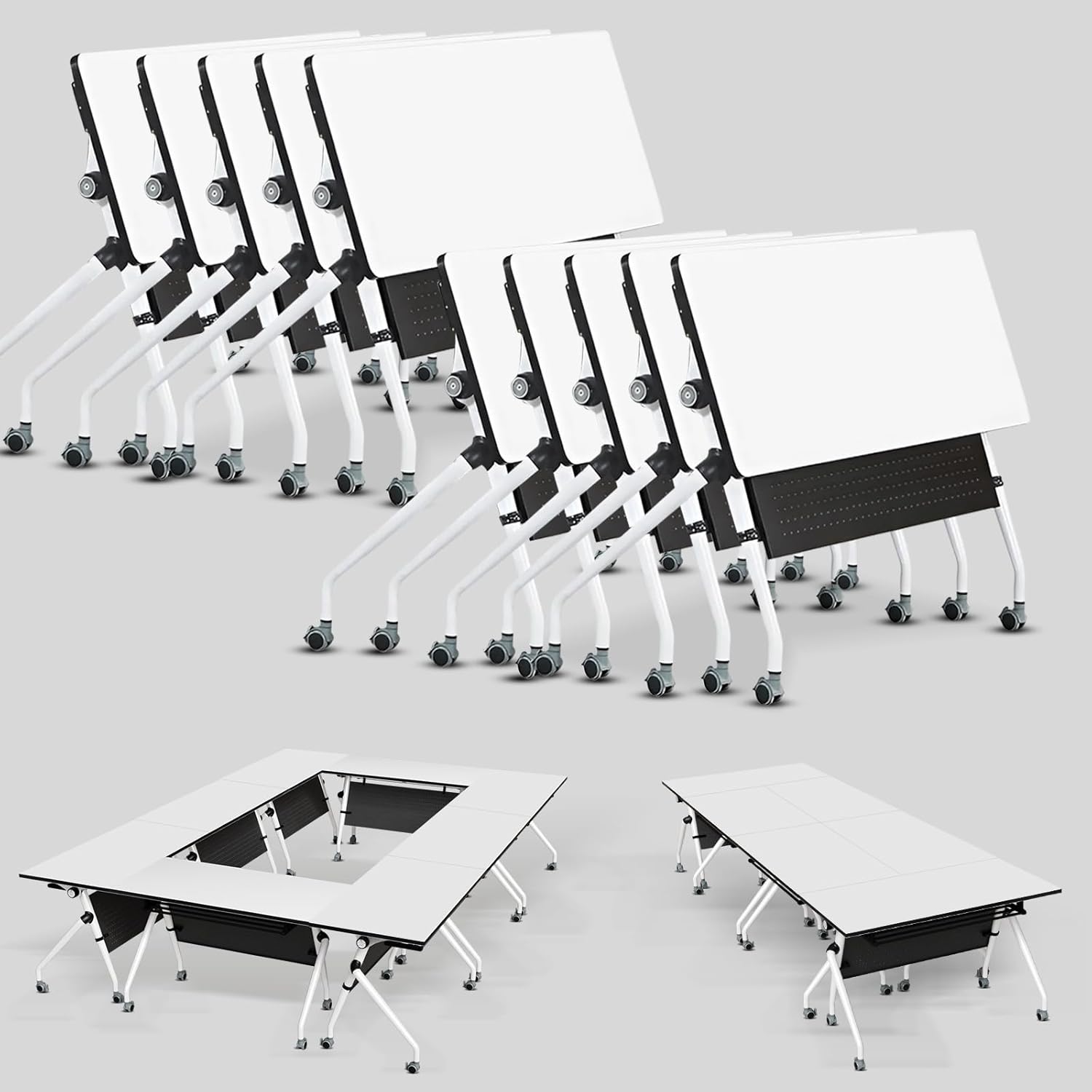 - 【Work Any Way You Want】Whether you're collaborating in a group, training new hires, or just need a temporary desk, our conference room table adapts. Use one as a standalone workspace, pair two for side-by-side projects, or line up a whole row for classroom-style training. When the day ends, fold 'em up and reclaim your space – it's that easy.