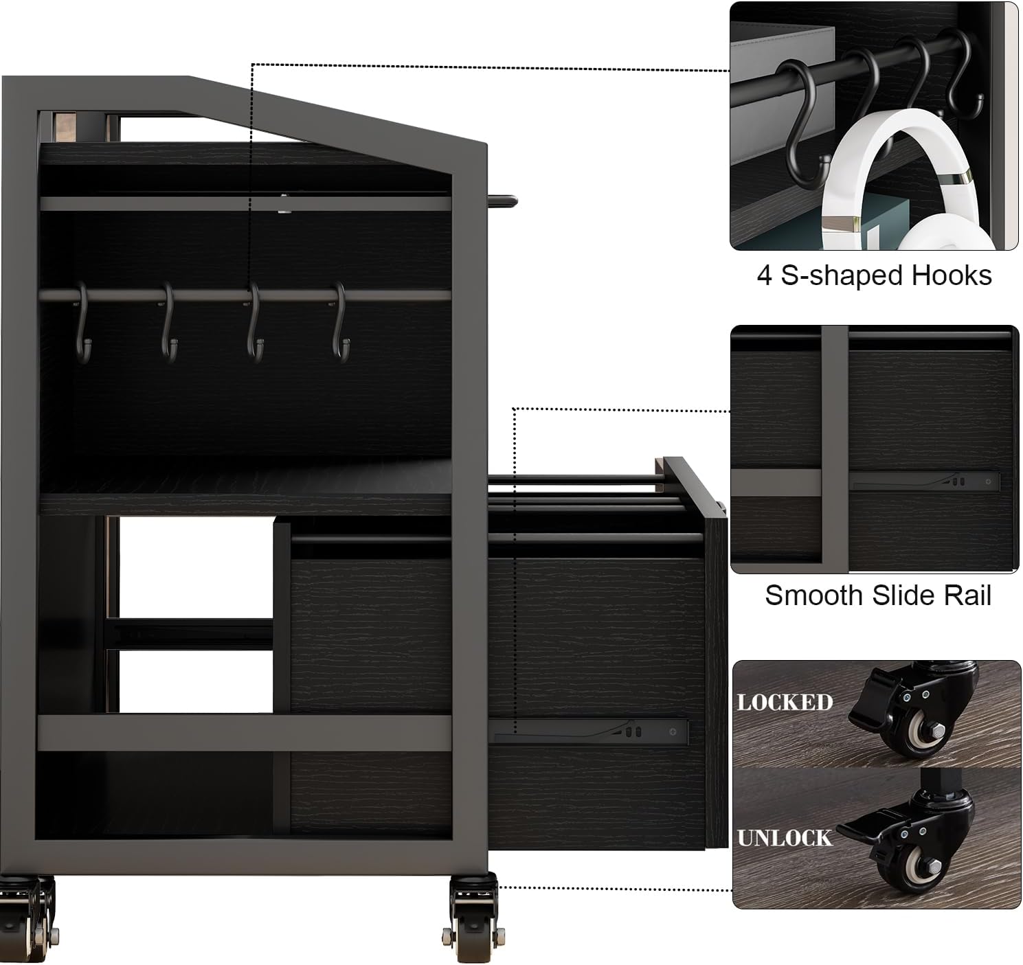 - Special Feature : 4 S Hooks, Lockable, Pull Out Hanging File Rack, Rolling File Cabinet, Wheeled