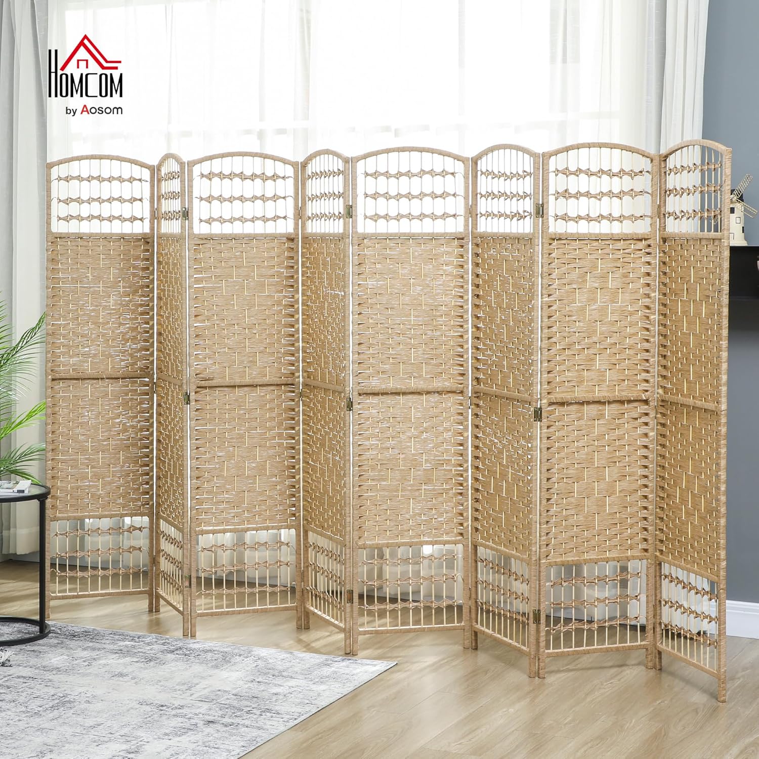 - Hand-Woven Style: Built with a wood frame featuring a stylish woven pattern crafted from paper rope and bamboo sticks, and decorated with a bent wood arched top, our wall divider brings a natural tone to your living room, bedroom, or home office.