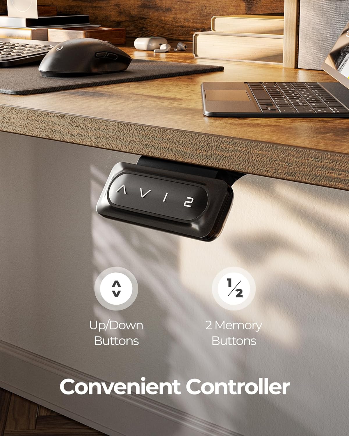 - Memory Height & Anti-Collison Technology: Standing desk has 2 programmable memory height buttons. If the adjustable desk encounters obstacles when lifting, it will move 2cm in the opposite direction to avoid possible damage or injury
